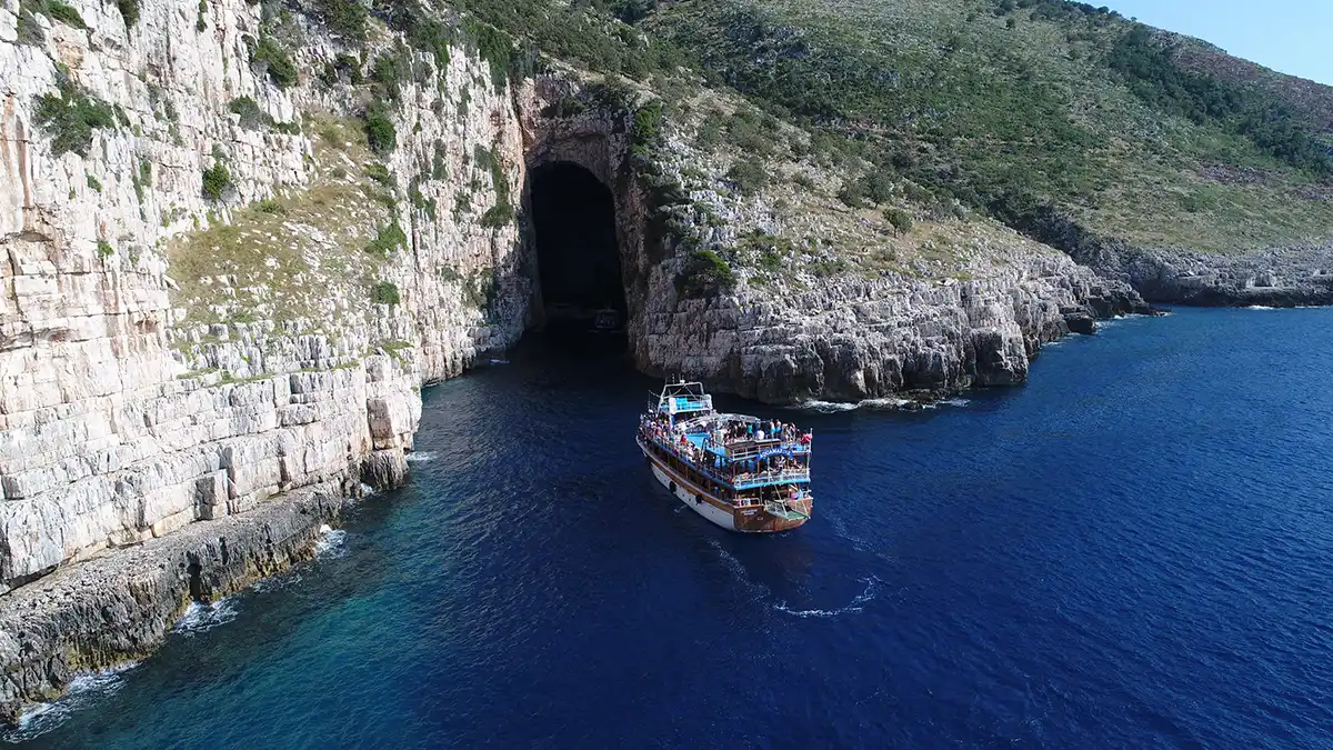 Meet with our Guide at your Hotel or in front of our office at 6.30 and depart to Vlora 155 km drive. At 09:00 depart for the port of Vlora to board the boat, which will take us on a lovely cruise along the Karaburun Peninsula. It is the largest peninsula in Albania. The peninsula is a Nature Reserve, and parts are still a military zone. While its’ surrounding sea waters form part of the Karaburun - Sazan National Marine Park. Near there is a point where the Ionian and Adriatic seas meet. You can see also the infamous Sazan island, which has been until recently an army base. Sazan has a coastline of 15 km and along its western shore, there are cliffs up to 40 meters underwater. Sazan has a climate unusual for Albania due to its’ maritime location. The flora is different from that of the rest of Albania as it is subtropical. We will see the Haxhi Aliu’s pirate cave and will have some time on a small beach where you can swim in the crystal-clear waters. Back on the boat, we leave to skirt Karaburun. A peninsula 15 kilometers long and 4 kilometers wide, which reaches a height of 800 meters above sea level at the highest point. The area retains some of the most beautiful beaches in the country, whose names (Saint Jan Beach, Aquamarine Beach, Saint Basil Beach) refer to the period in which the British passed through these parts. Stop for about 3-4 hours with the possibility of sunbathing and swimming in the blue and crystalline waters of the Ionian Sea. In the late afternoon departure for the return to Tirana